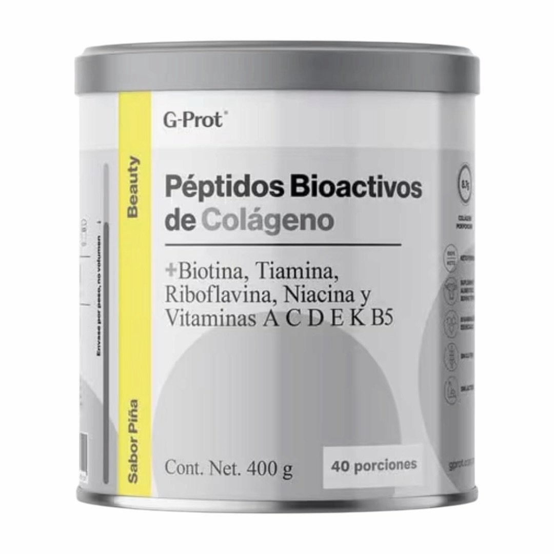 El Beauty Advance Péptidos Bioactivos de Colágeno Naranja 400g de G-PROT es un suplemento alimenticio en polvo de fácil asimilación, formulado específicamente para el cuidado avanzado de la piel, el cabello y las uñas. Cada porción de 10g aporta 8.9g de colágeno junto con una fórmula enriquecida con antioxidantes, keratina y ácido hialurónico.